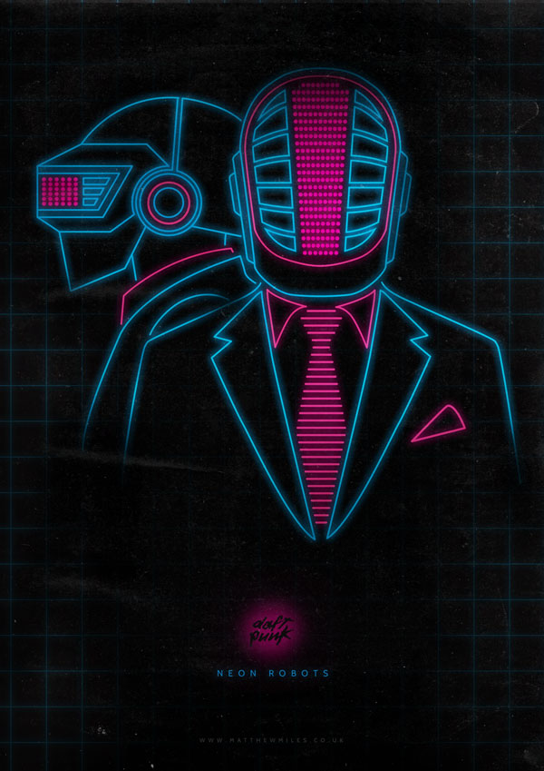 As the great LCD Soundsystem once said "Daft Punk is playing at my house" well in this case more hanging on the wall at my house. Neon Robots is a Tron inspired retro Daft Punk poster.